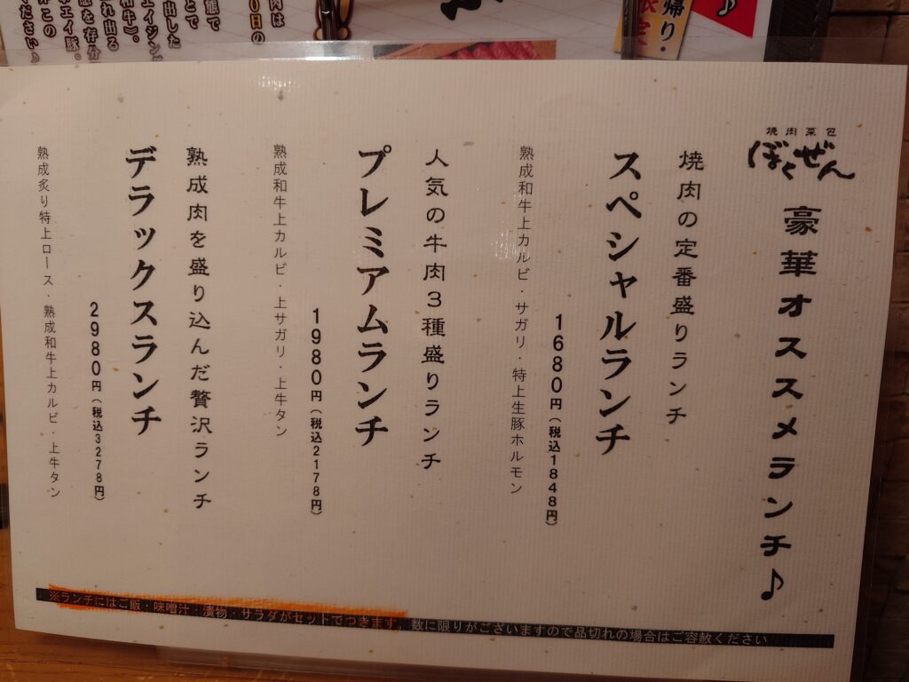 平日のお昼を頂きに、朴然 伏古店を開店直後に訪れたのである。以前に一度来たことがあったが、その時は年末年始の繁忙期でランチ提供がなく断念した経緯がある。今回はしっかりランチ営業があると確認し、風邪明けの身体でヘビーな焼肉を求めて再訪した。