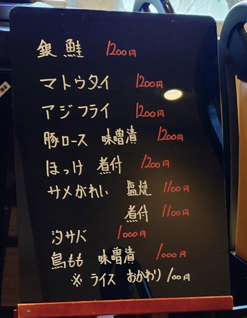 この日のメニューは、焼き魚が銀鮭、マトウダイ、サメかれい、汐サバ。煮付魚はほっけ、サメかれいと、どれも惹かれるラインナップ。その中から「サメかれいの煮付(1,100円)」を注文しました。かれいは骨が多くやや食べにくい魚ではあるが、こちらなら丁寧に仕上げてくれるだろうという期待がありました。