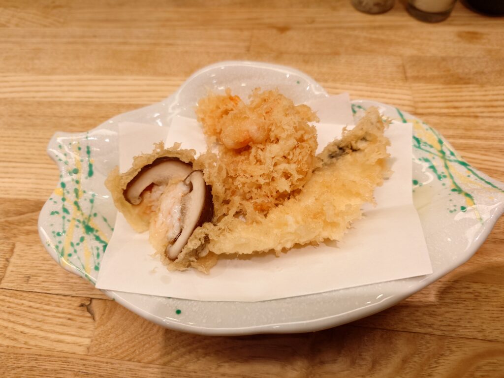 続いて第2弾の天ぷらが提供され、穴子やかき揚げなど、メインの魚介類が提供されました。この後の天ぷらも非常に美味しく、最後まで専門店ならではの質の高さを堪能しました。