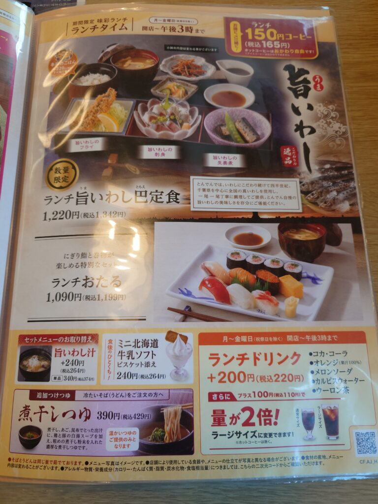 【和食レストラン とんでん】40年ぶり再訪!「いわし巴定食」でフライ・刺身・煮物を一気に堪能(札幌・東区)